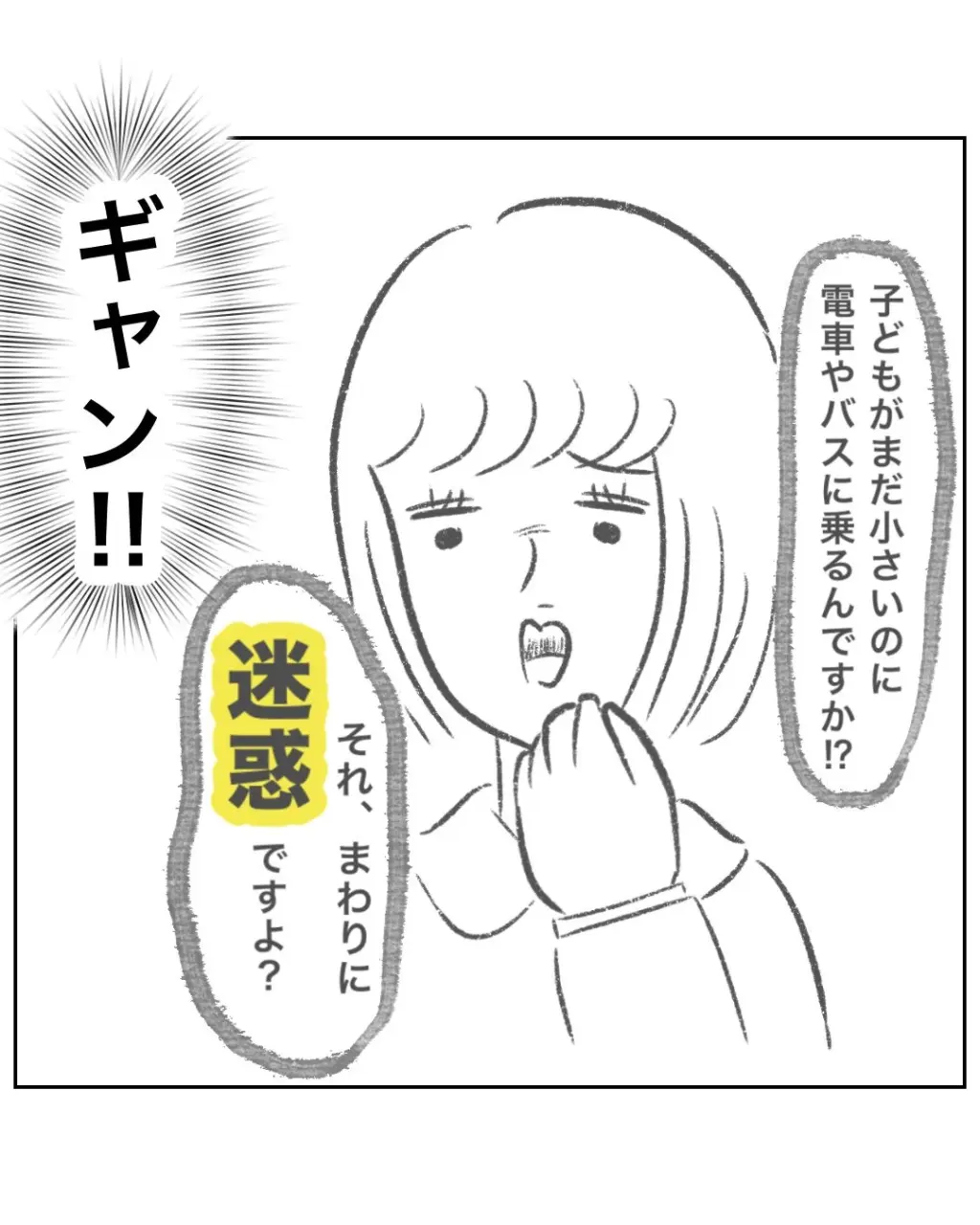 「子どもはいつグズるか分からない生き物ですし!常識で考えたら3歳までは公共の乗り物の利用は避けるべきですよ?」と、まるでまるさんが非常識かのように言いました。