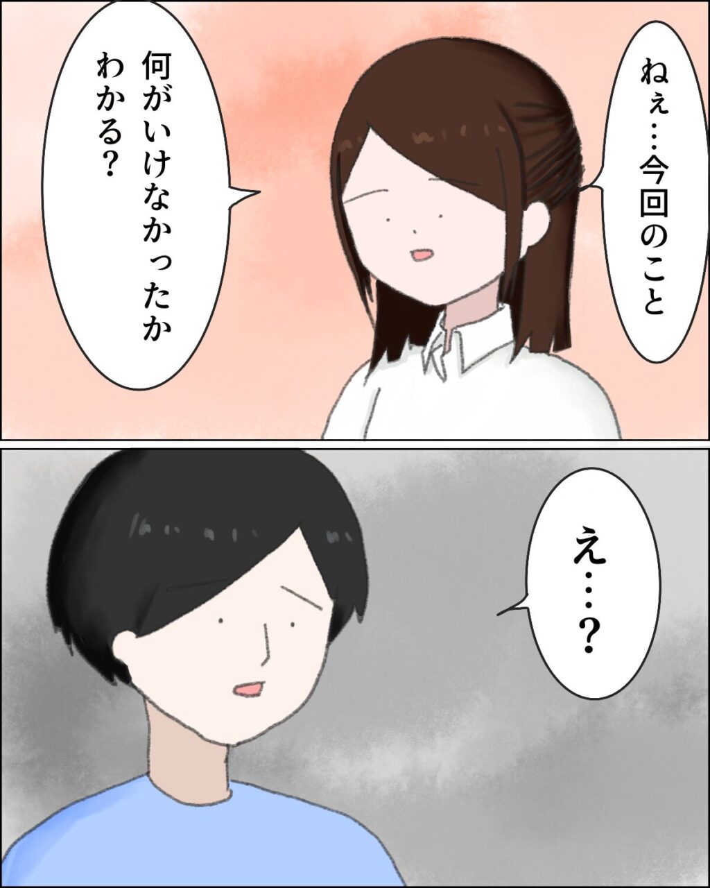 「ねぇ・・今回のこと、何がいけなかったかわかる?」私がそう言うと、「え・・?」と驚く夫。