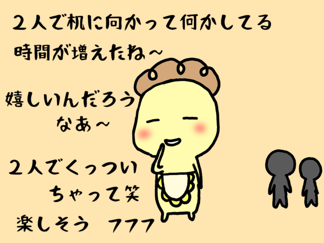 長女いち子ちゃん、次女ふた江ちゃんが小学生、長男さん太郎くん、次男よんの助くんが幼稚園生だった頃。お姉ちゃん達の学習机に憧れていた弟くん達2人が・・・。