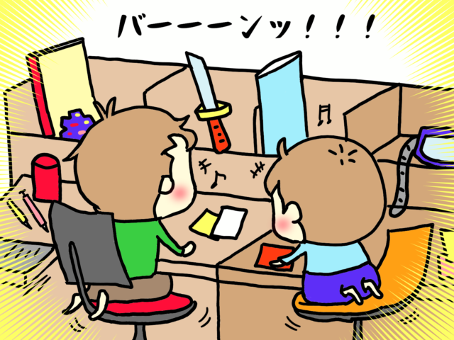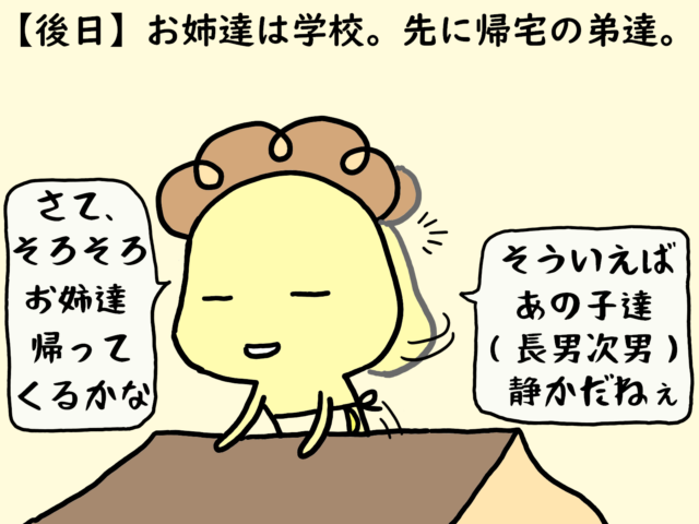 姉達小学生組の学習机に、弟達が憧れていたのはわかる。だからって姉の居ぬ間に・・・