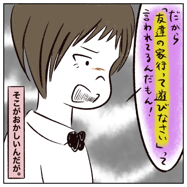 さらに「だから『友達の家行って遊びなさい』って言われてるんだもん!」とおかしな理由を言い始めます。