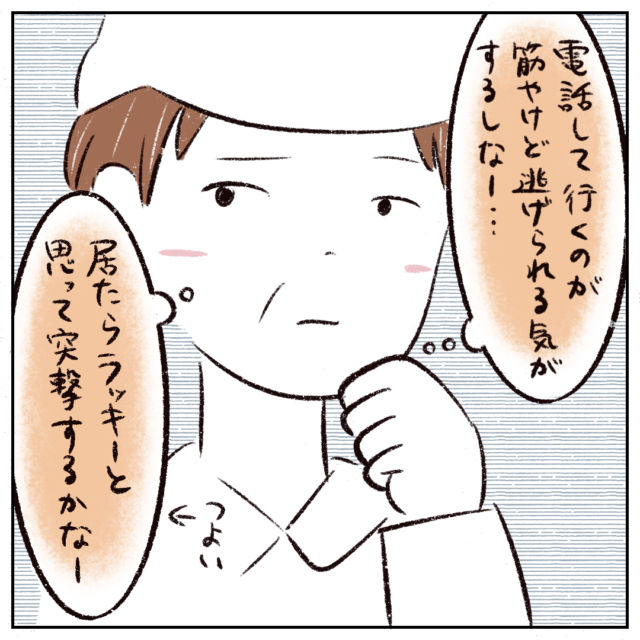 「電話して行くのが筋やけど逃げられる気がするしなー・・・居たらラッキーと思って突撃するかなー」と、どうやってさなかちゃんの親と話しをするかを考えるお母さん。