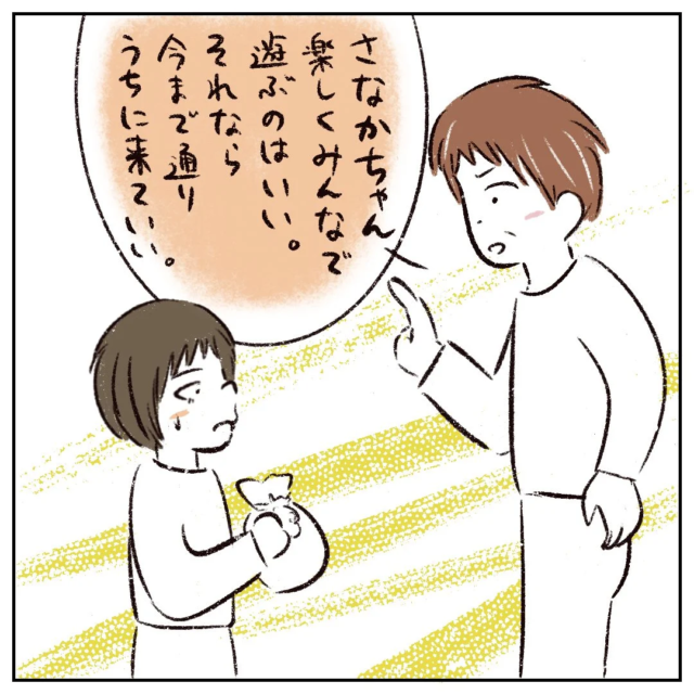 「さなかちゃん、楽しくみんなで遊ぶのはいい。それなら今まで通りうちに来ていい」お母さんは話を続けます。