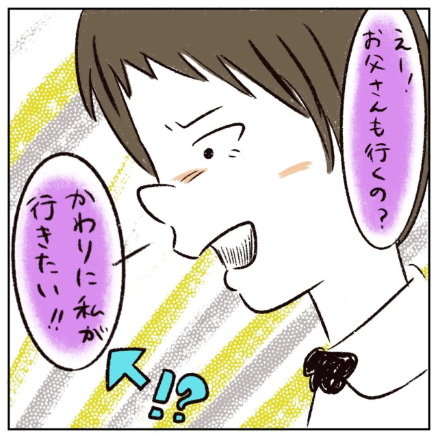 すると「えー!お父さんも行くの?かわりに私が行きたい!!」と言い出すさなかちゃん。(え?なんで!?)