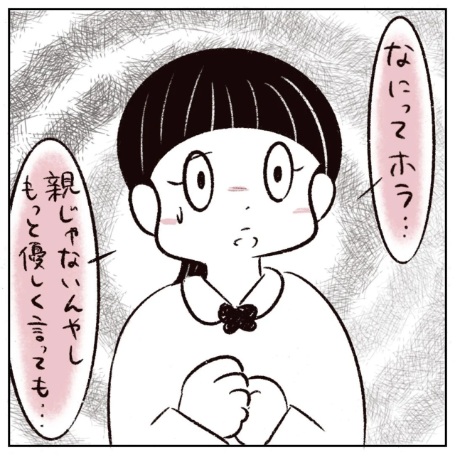 「なにってホラ・・・親じゃないんやしもっと優しく言っても・・・」とオドオドと話します。
