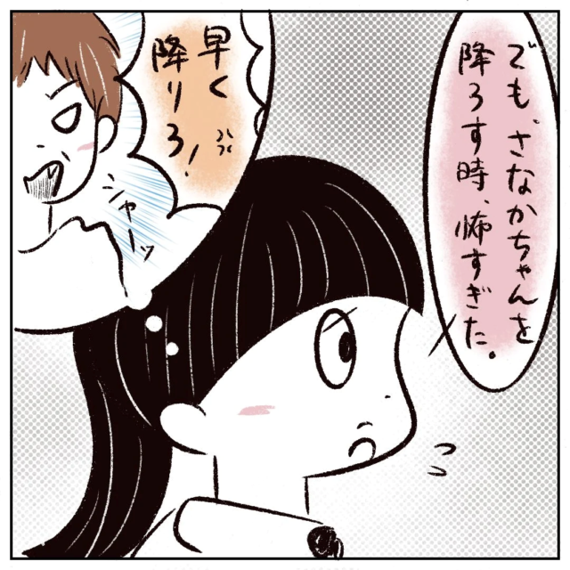 しかし、納得できないまるさん。さっき車からさなかちゃんを降ろす時に「早く降りろ!」と怒ったお母さんを思い返しながら「でも、さなかちゃんを降ろす時、怖すぎた」と言いました。