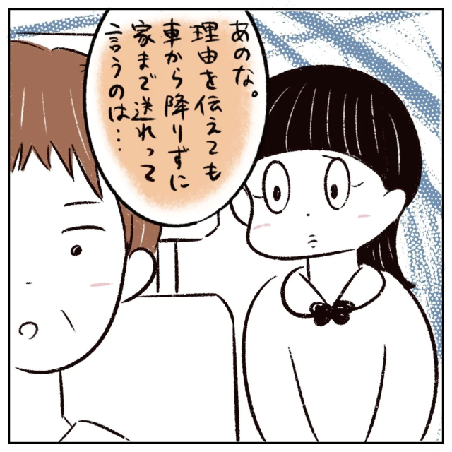 するとお母さんは「あのな。理由を伝えても車から降りずに家まで送れって言うのは・・・」