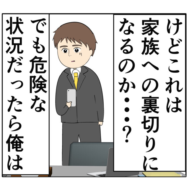 「けどこれは家族への裏切りになるのか・・・でも危険な状況だったら俺は」家族とジュリ実さんの間で葛藤するもジュリ実さんへの心配の気持ちが勝るろみ緒さん。