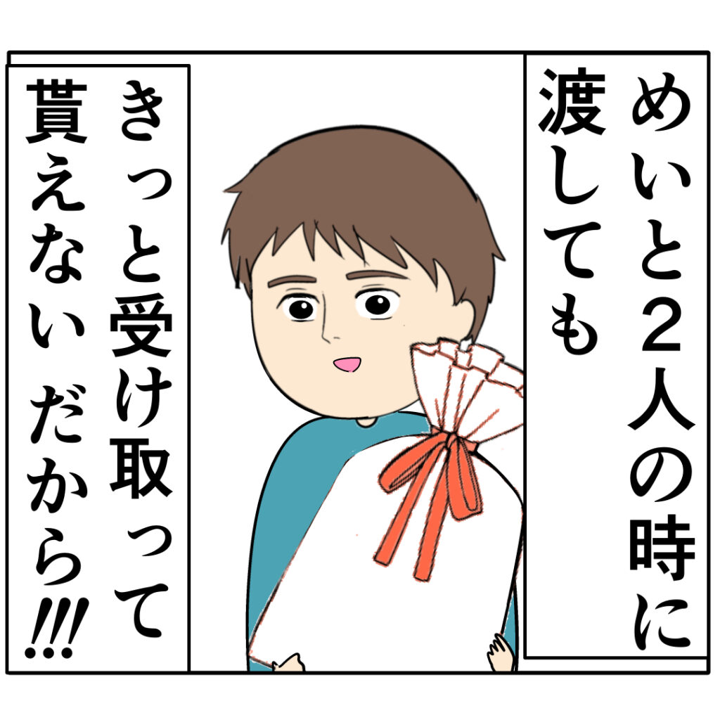 めいさんの気持ちを取り戻すためプレゼントを贈ることを思いついたろみ緒さんですが、2人の時に渡しても受け取ってもらえないと思い、