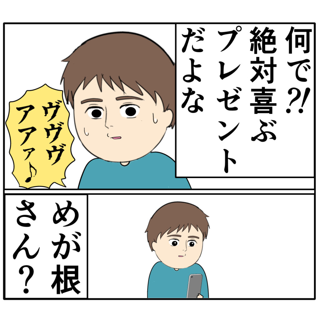 予想外のめいさんの反応にろみ緒さんが「何で?!絶対喜ぶプレゼントだよね」と不思議に思っていると、めが根さんからメッセージが届きました。