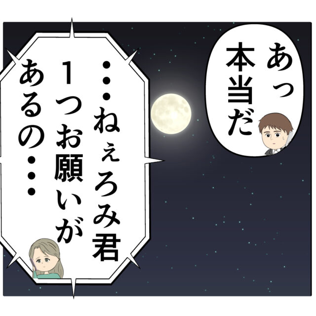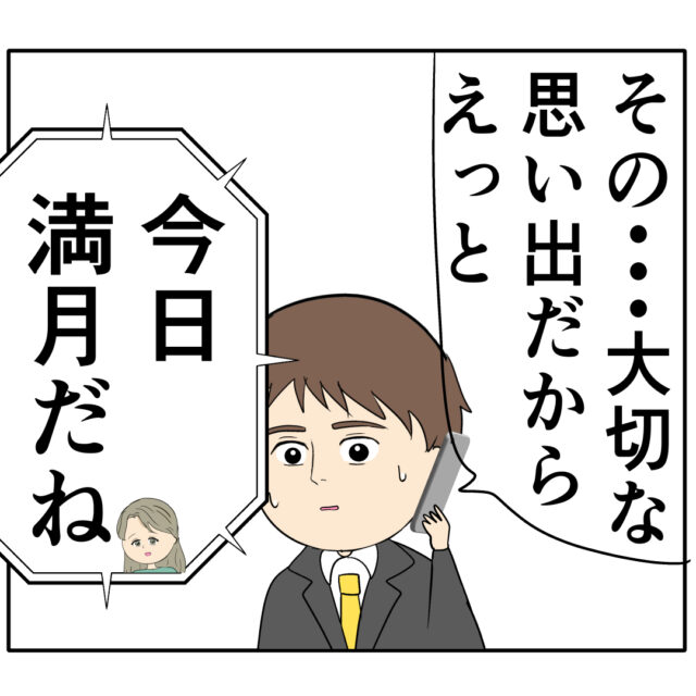 「その・・・大切な思い出だから、えっと」と必死に言葉を探します。すると「今日、満月だね」と突然話を逸らしたジュリ実さん。