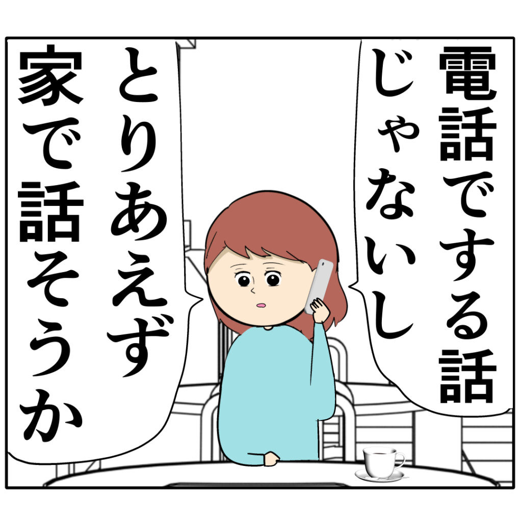 ろみ緒さんの気持ちを聞いためいさんは、「電話でする話じゃないし、とりあえず家で話そうか」と冷静に返答。