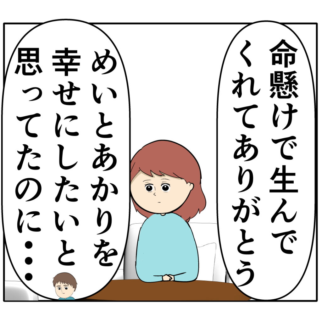 そして、「命懸けで生んでくれてありがとう」とめいさんに感謝を伝えると、「めいとあかりを幸せにしたいと思ってたのに・・」と言い、そうできなかったことを悔いるろみ緒さん。