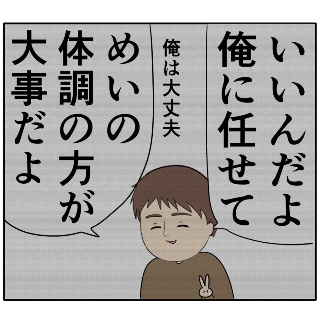 めいさんに気持ちを伝えながら、ろみ緒さんはこれまでの結婚生活を振り返っていました。あかりちゃんが生まれたばかりの頃、慣れない育児で疲れているめいさんに「夜泣き俺見るから」と言うと「明日仕事あるでしょ。大変だから」と自分のことよりもろみ緒さんの体調を心配してくれためいさん。