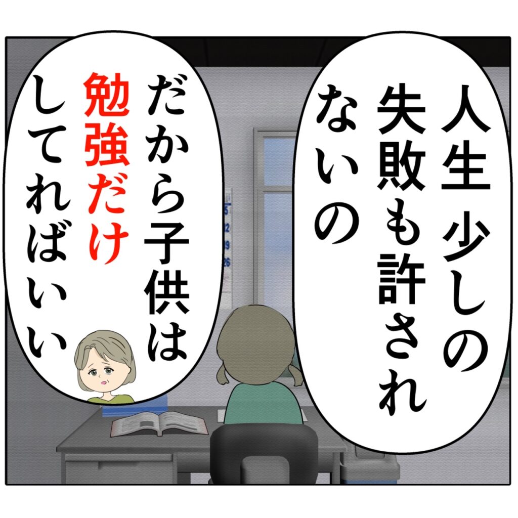「人生少しの失敗も許されないの。だから子供は勉強だけしてればいい」と持論を語りました。