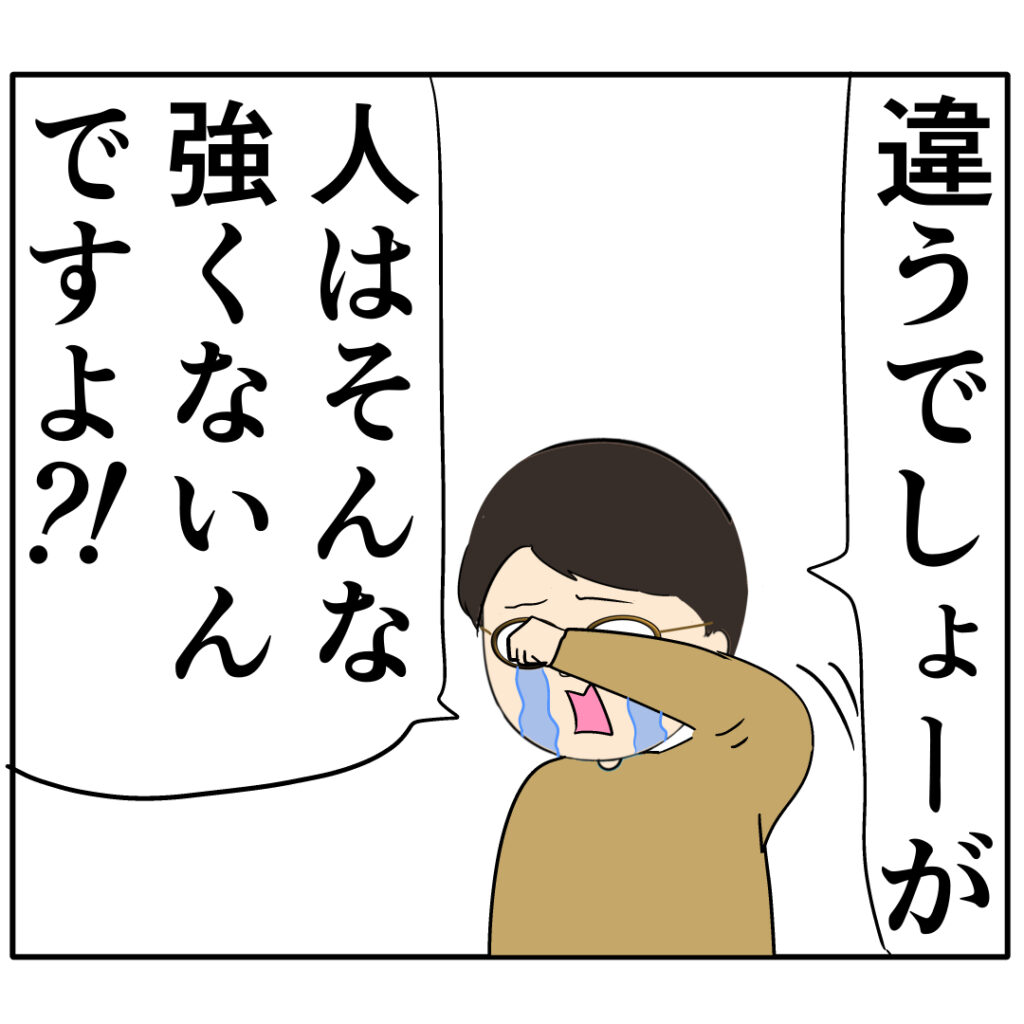 そんな義母に、めが根さんは泣きながら「違うでしょーが。人はそんな強くないんですよ?!」と抗議。