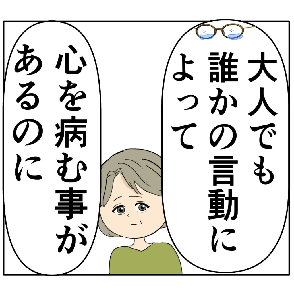 めが根さんは、ジュリ実さんのことを思いながら義母に語りかけます。「大人でも誰かの言動によって心を病む事があるのに」