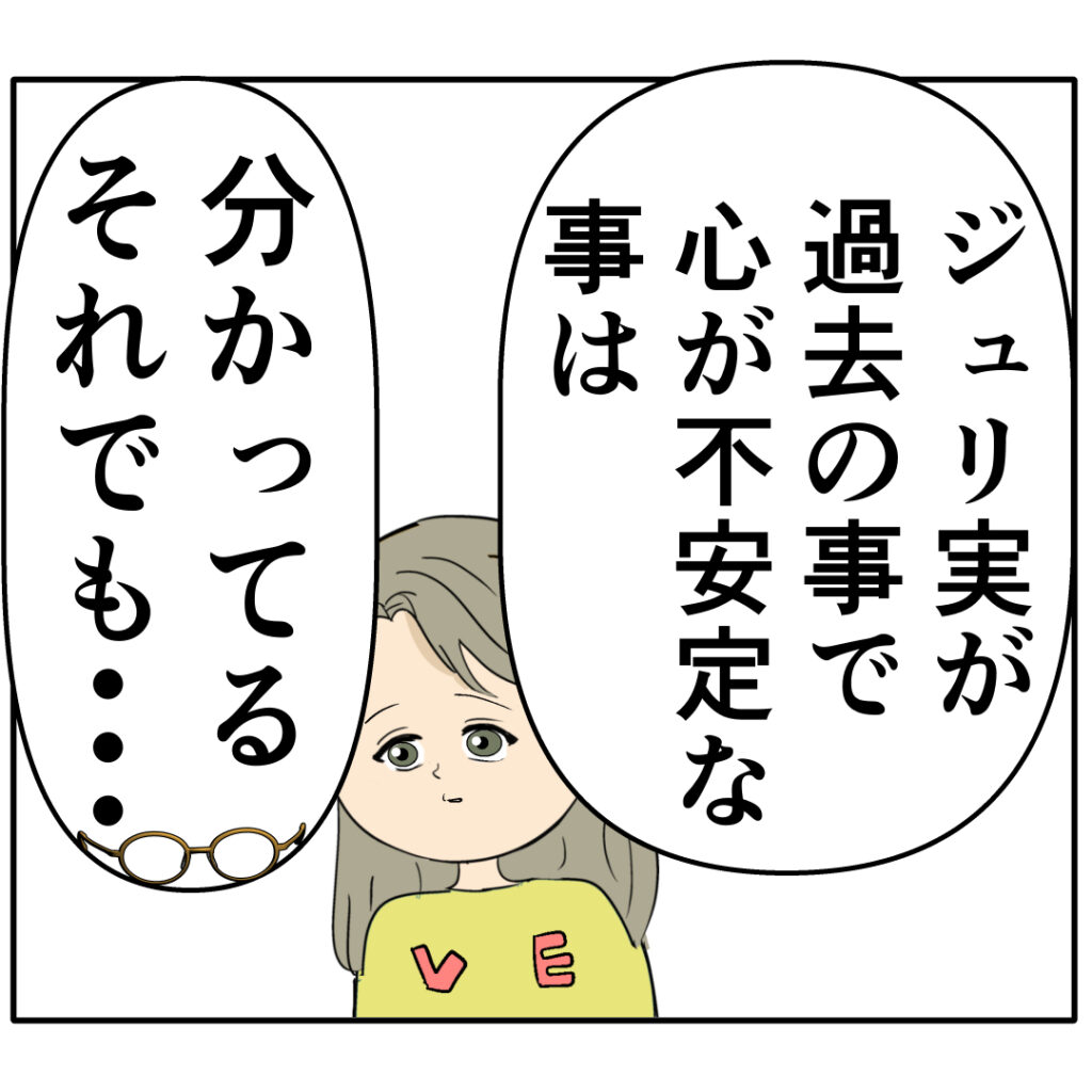 「ジュリ実が過去の事で心が不安定な事は分かってる」とジュリ実さんの気持ちに寄り添いつつも、「それでも・・」と続け、