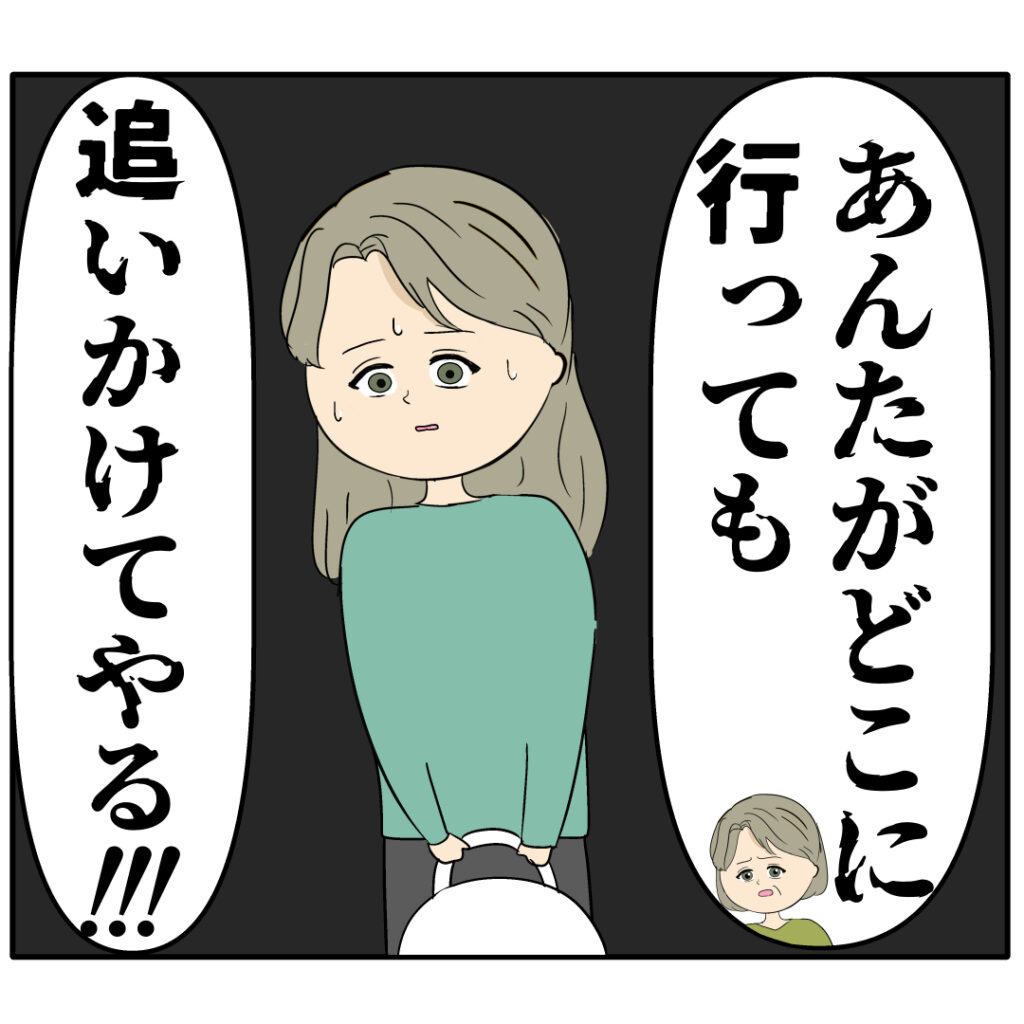 ジュリ実さんから縁を切られた母親は、腹を立てジュリ実さんとめが根さんを待ち伏せして会いに来ました。そして「縁を切るなんて許すわけないでしょ?あんたがどこへ行っても追いかけてやる!!!」と言って帰って行きました。ジュリ実さんは「海外へ行ってもお母さんが来る」と怯えていると話すめが根さん。そして、めが根さんも「義母ならやりかねない」と感じており、勤務先に義母の知り合いがいるため転勤先が義母に知られる可能性がある、と不安を口にしました。