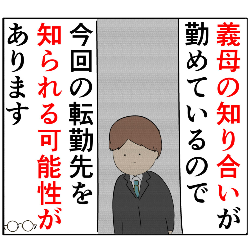 「会社には義母の知り合いが勤めているので、今回の転勤先を知られる可能性があります」と、海外へ行っても義母からは逃れられないかもしれないと不安を口にします。