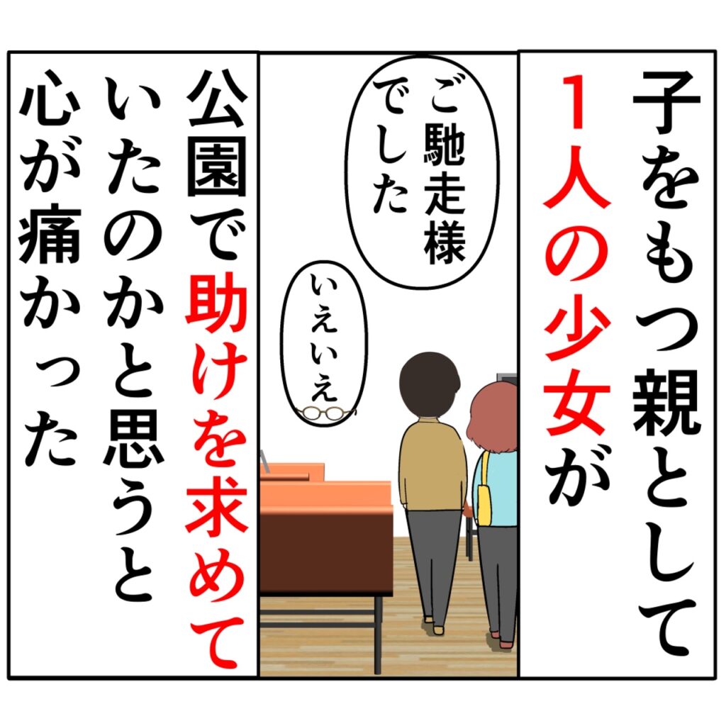 ジュリ実さんが子どもの頃に母親から教育虐待を受け公園に置き去りにされていたという話しを聞いためいさんは、子どもを持つ親として、1人の少女が公園で助けを求めていたのかと思うと心が痛みました。