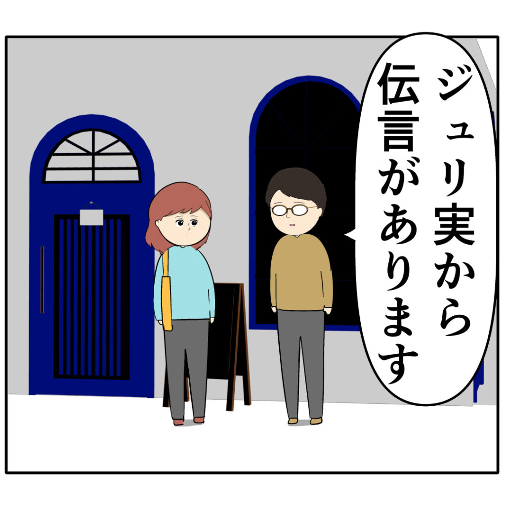 色々な話しをしてお店を出ると、めが根さんが「ジュリ実から伝言があります」と切り出しました。