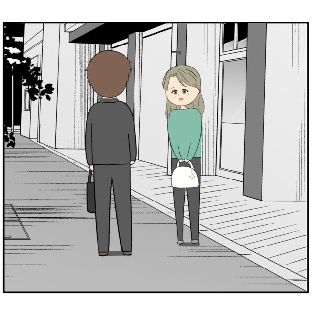 妻めいさんに内緒で元彼女ジュリ実さんと連絡を取り合っている夫ろみ緒さん。ある日、家族でスーパーに出かけたろみ緒さんはジュリ実さんがめいさんと親し気に話す姿に動揺。自分にも挨拶され咄嗟に他人のふりをすると、ジュリ実さんも「初めまして」と合わせてくれホッとするろみ緒さんですが、家族に接触するのはやめて欲しいと感じます。そして、ジュリ実さんがなぜめいさんを知っているのか考えたろみ緒さんは、同窓会の時にスマホの待ち受け画面の家族写真を見たのだと気付きます。