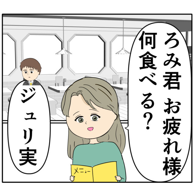 2人は飲食店に入りました。「ろみ君お疲れ様。何食べる?」とメニュー表を見ながら話しかけるジュリ実さんに「ジュリ実」とろみ緒さんが切り出しました。