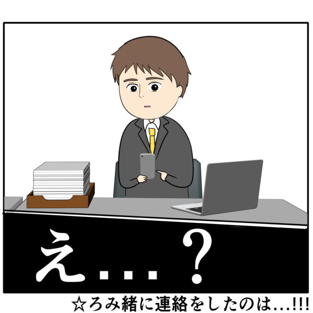 一方、オフィスで仕事中のろみ緒さんは、スマホに届いたメッセージを確認して驚いていました。