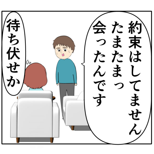 ろみ緒さんが「約束はしてません。たまたま会ったんです」と話すのを聞いためいさんは「待ち伏せか」と察します。