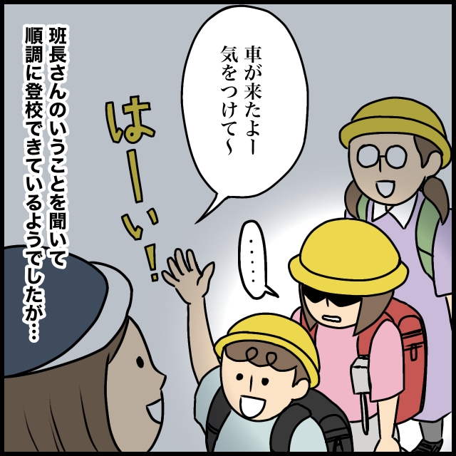 学校へ行きたくなくなってしまった1年生の女の子。そんなこともあるよね、という気持ちはわかりますが、親も先生も周りにいない状況で、班長さんはその子を置いて行くわけにもいかないし、みんなで遅刻してしまったら大変ですし、どうしたらよいのか不安でドキドキしてしまいますよね。