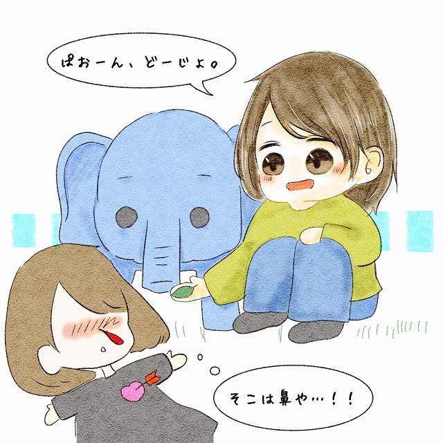 公園の石像(動物)にご飯をあげてる我が子が可愛い