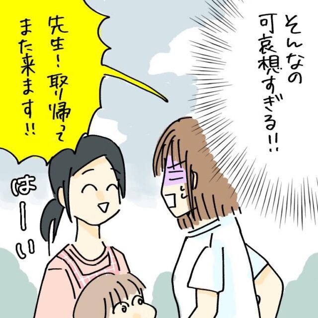 そんなの可哀想すぎる!!「先生!取りに帰ってまた来ます!」プールバッグを取りに帰ることを決意。