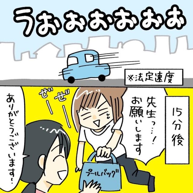 うおぉぉぉぉぉ!と法定速度を守りつつ心の中は爆走で急いで帰宅。プールバッグを手に再び保育園にとんぼ返り。