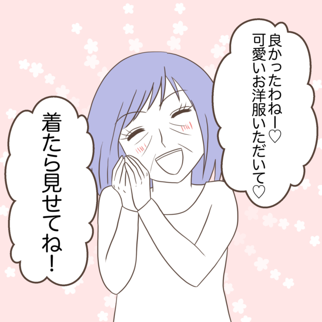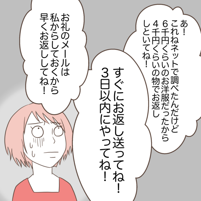 お、お義母さん・・!?娘ちゃんへのプレゼントがぐちゃぐちゃになっていたのは・・先に開けてチェックしていたから・・なんですね(汗)お値段もチェック済みとのこと・・お礼はもちろん早い方が良いとは思いますが・・動揺が・・隠せません~!