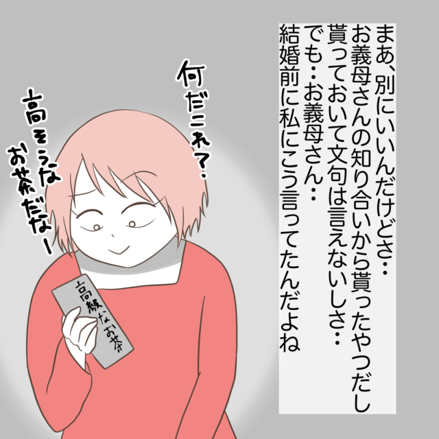 3世帯住宅を新築し、義母と義祖母との同居生活が始まったわたすさん。ある日、お義母さんから渡されたのは開封済みの出産祝い。驚くわたすさんにお義母さんは「私のお友達がくれたものだからチェックするのが当たり前」と言い、さらに戴いたプレゼントの値段まで調べていました。お返しの値段も指定し3日以内に送るよう急かしてくるお義母さんに言葉も出ないわたすさんでした・・・。