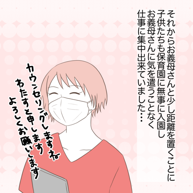 3世帯住宅を新築し、義母と義祖母との同居生活が始まったわたすさん。ある時、ご主人の歯科医院で起きた大ピンチを夫婦2人でなんとか乗り切り疲労困憊で帰宅すると、美容院やまつ毛パーマなどを終えてご機嫌で帰宅した義母と遭遇。状況を伝えようとしたところ「そんなことより見て~!」と自身のまつ毛を見せ、さらに「何でそんなに頑張ってるの?意味ないんじゃない?」と言って立ち去る義母にショックのあまり立ち尽くします。ちょうどその時、子ども達を預かってくれていた実母からわたすさんを労い身体を心配するメッセージが。それを見た途端、今まで我慢していたものが溢れ出し涙が止まりませんでした。
