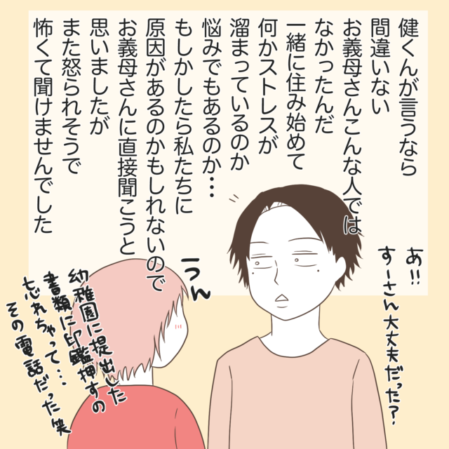 お義母さんの言動や行動が・・息子であるご主人健さんにも理解しがたいものに・・(汗)「別の人みたいだった」という言葉は・・同居している身としては気になりますよね・・。そしてもっと気になる夜のお出かけ・・あ母さんの暴走が・・怖いです~っ!!