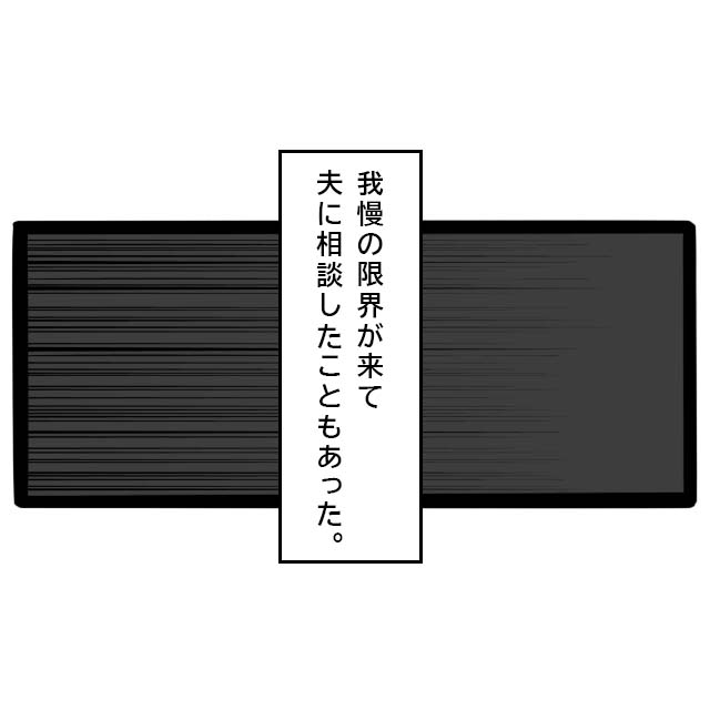 夫と結婚した当初から嫌がらせはありましたが、ダイが産まれてからは徐々にヒートアップ。嫌味を言われたり無視されたり、なぜこんな仕打ちを受けないといけないのか・・・我慢の限界が来て、夫に相談したこともありました。