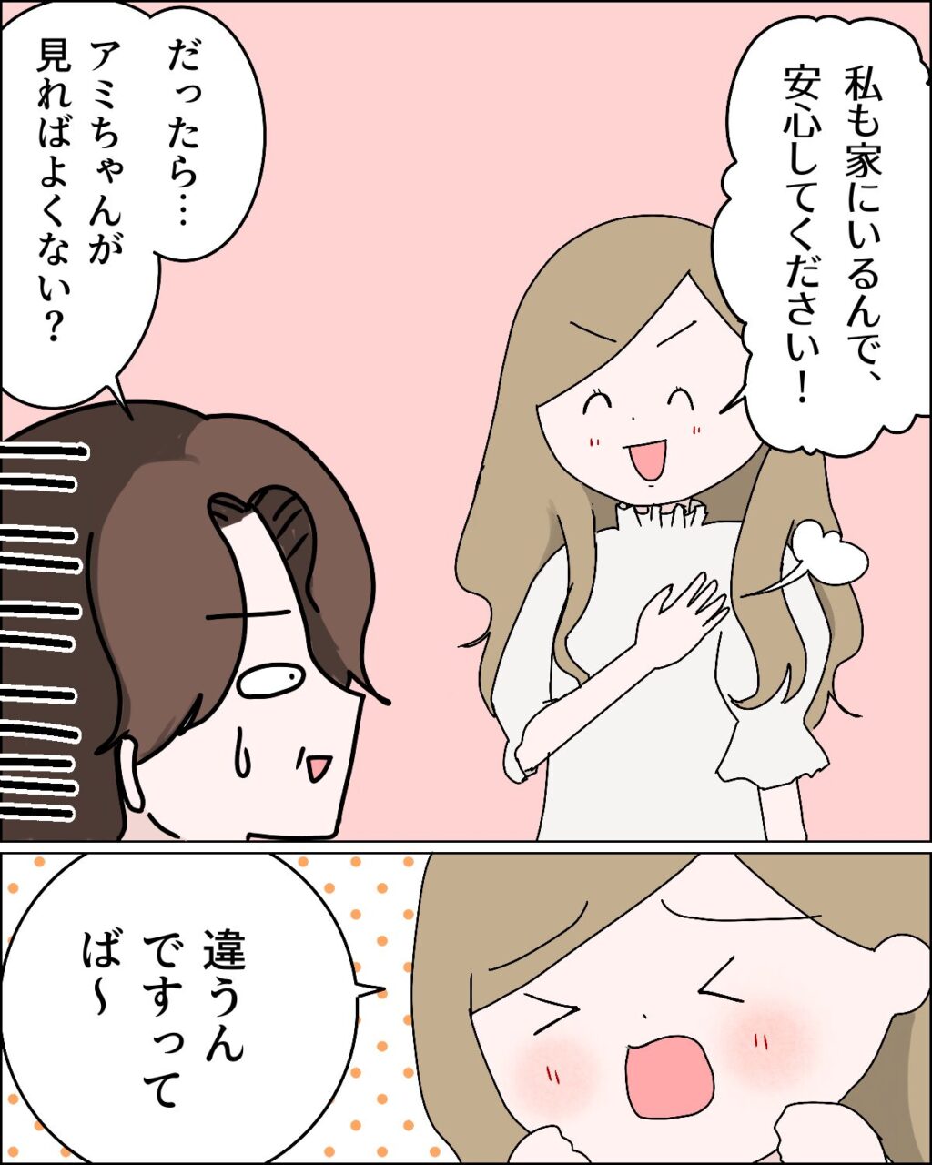 コウくんを私に押し付ける宣言をしておきながら、「私も家にいるんで、安心してください!」と、どの目線で言ってるのよ!?投資や株って?どこかスクールにでも行くのかと思いきや、家にいるってどういうこと?と思った私はすかさず「だったらアミちゃんが見ればよくない?」と言うと「違うんですってば~」と・・・違うとは?