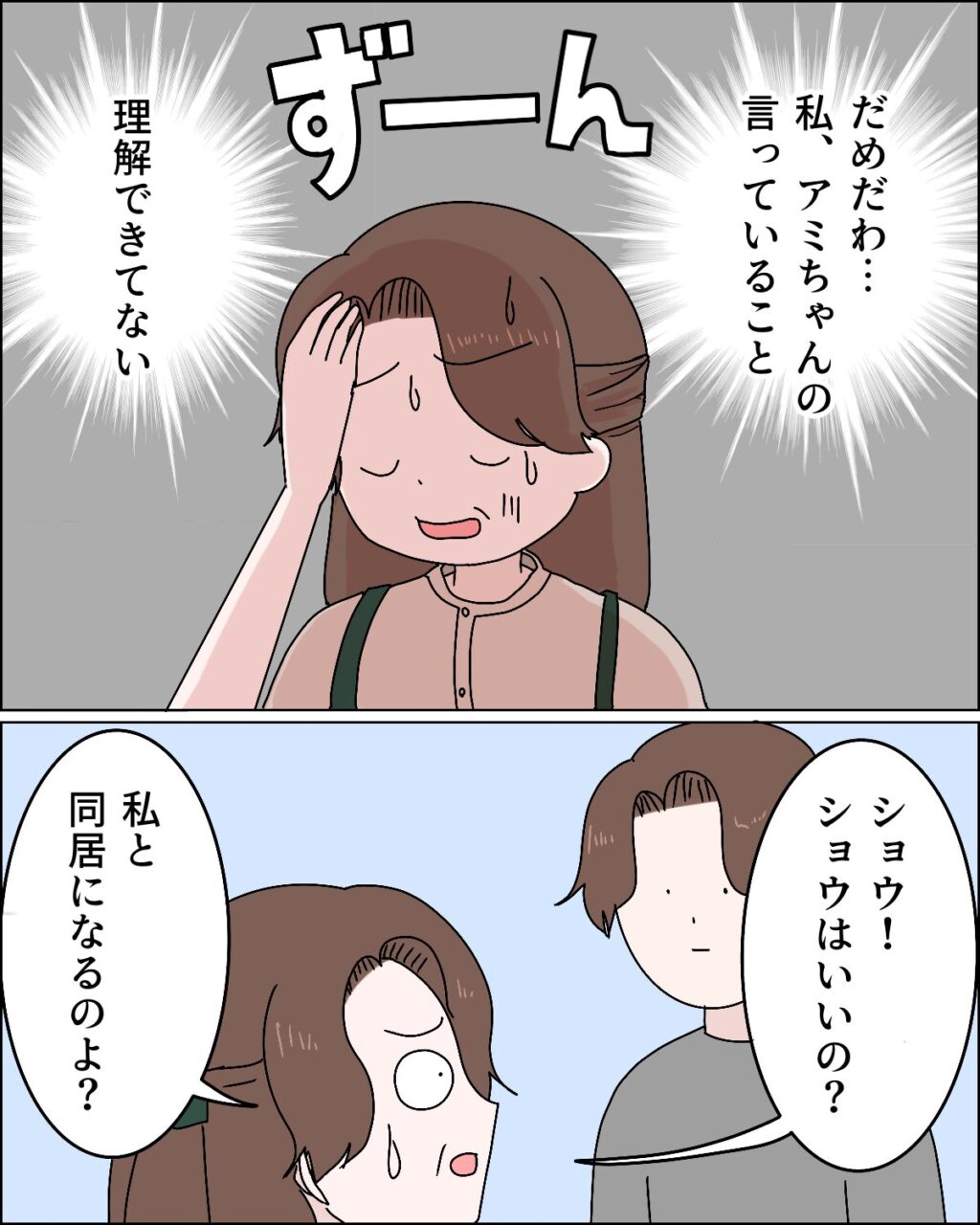ダメ、嫌とハッキリ言いきれず、不安な要素を並べて同居を回避しようとするヨシコさんですが、アミさんはもうすっかりその気のようですね。将来のビジョンがあることは素晴らしいとは思いますが、人を巻き込むのなら先ずは相談するべきですよね。