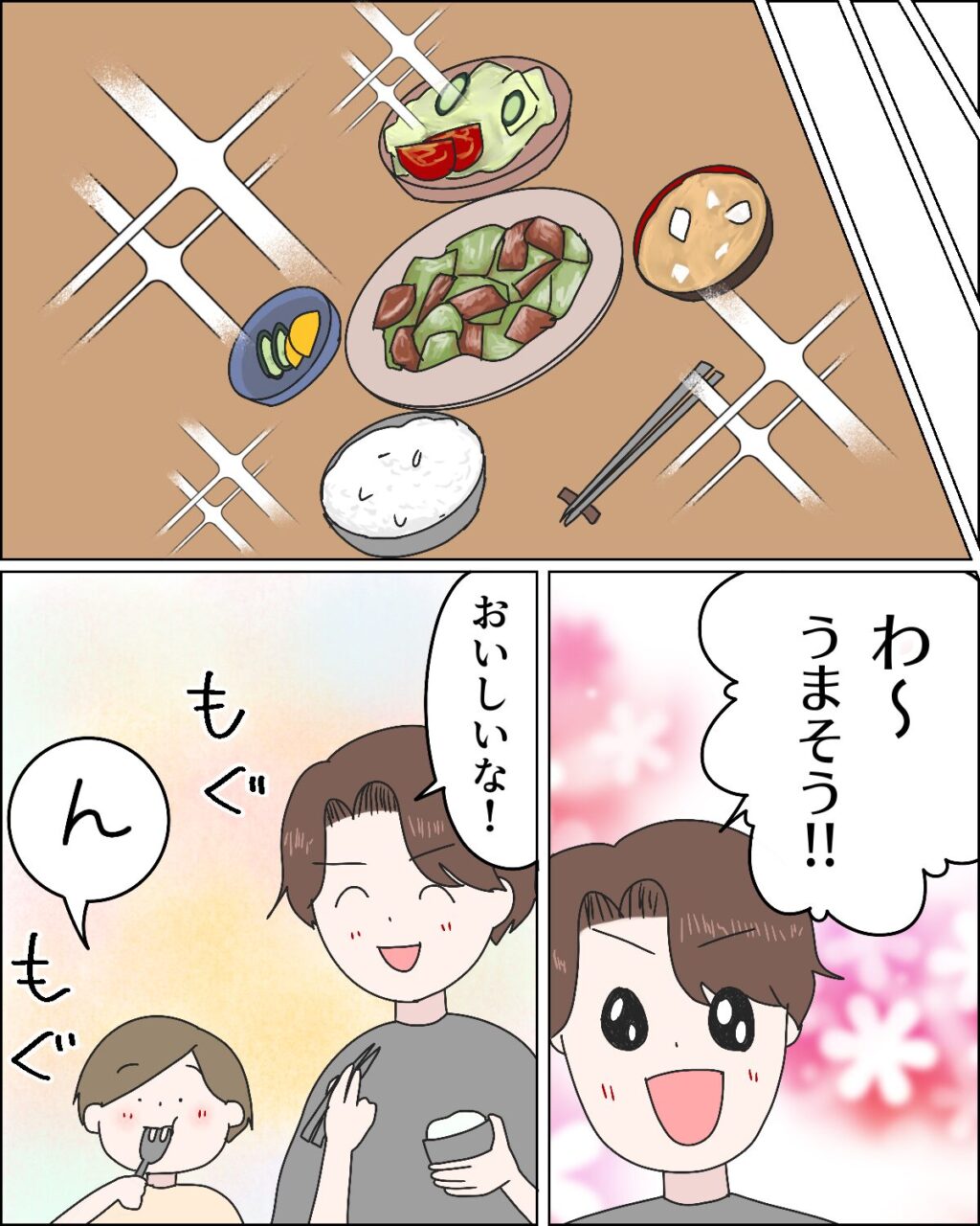 「えーオレ、母さんの料理食べたいし。ご飯は母さんが準備するってどう?後片付けは俺がするから。」ショウは、さも良い提案をしているかのように言いました。自分でするという選択肢のない息子。育て方、間違ったかしら。ルールを守って欲しい気持ちはありましたが、ショウや、ショウのとなりで「おいちぃ」とご飯をモリモリ食べているコウくんを見ていたら、このまま頑なにルールを優先してご飯をアミちゃんに任せると、健康の方が心配になってきてしまいました。
