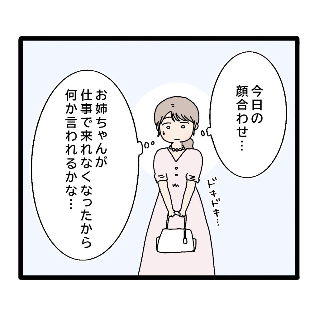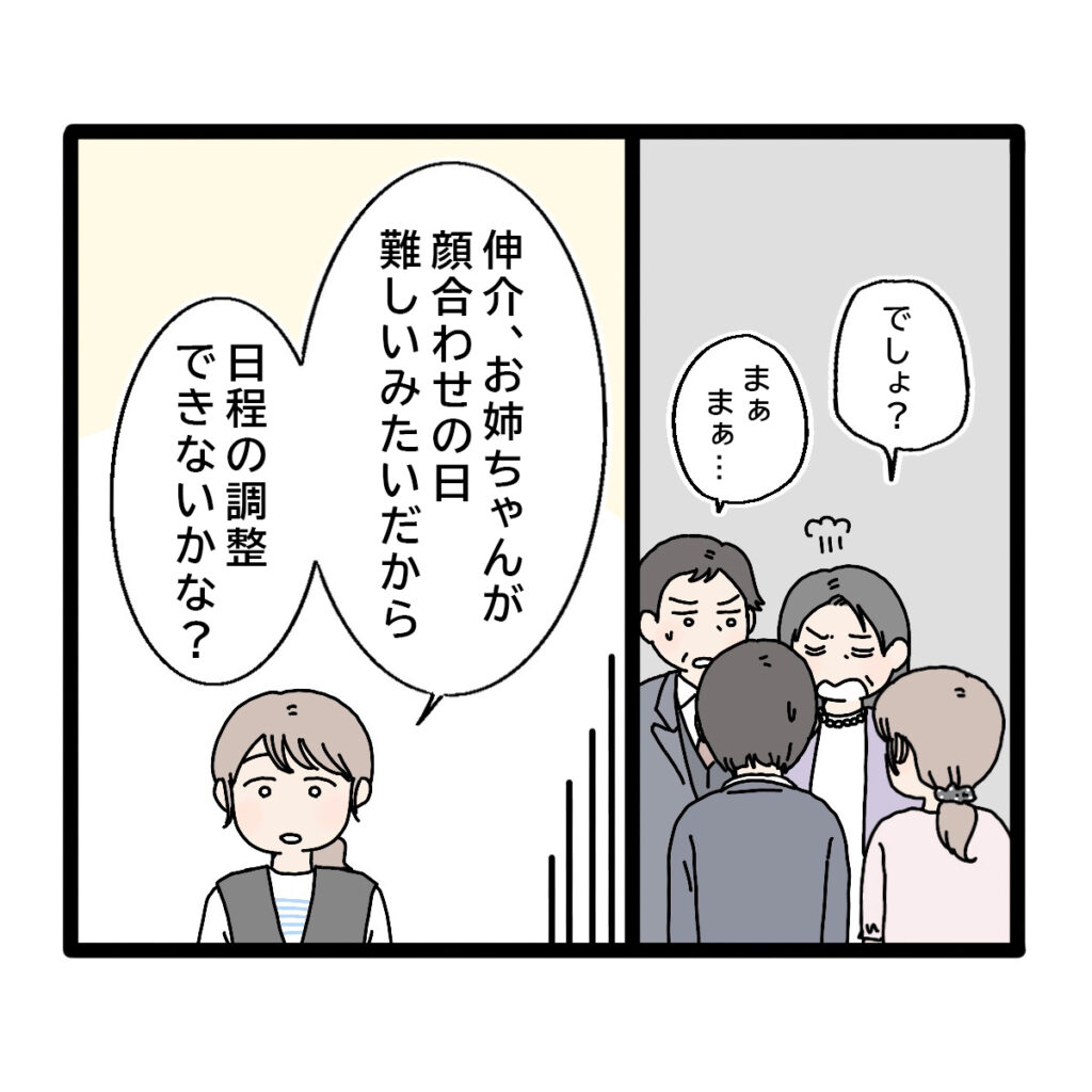 [1]嫁いびり義母|「大丈夫じゃないじゃん」夫に相談するも姉不在の顔合わせを義母に責められ唖然