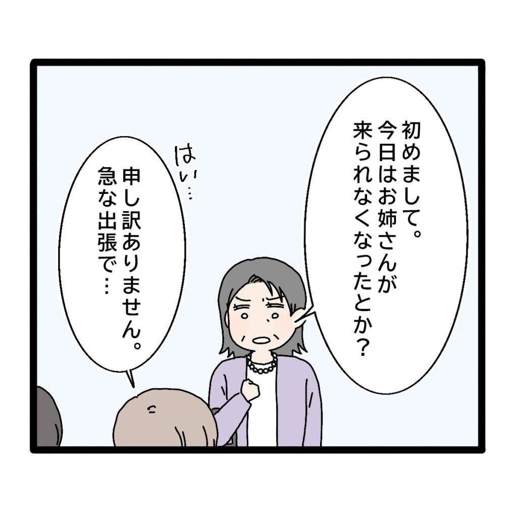 すると、「初めまして。今日はお姉さんが来られなくなったとか?」険しい表彰でそうたずねる義母。「はい・・申し訳ありません。急な出張で・・」と謝罪すると、