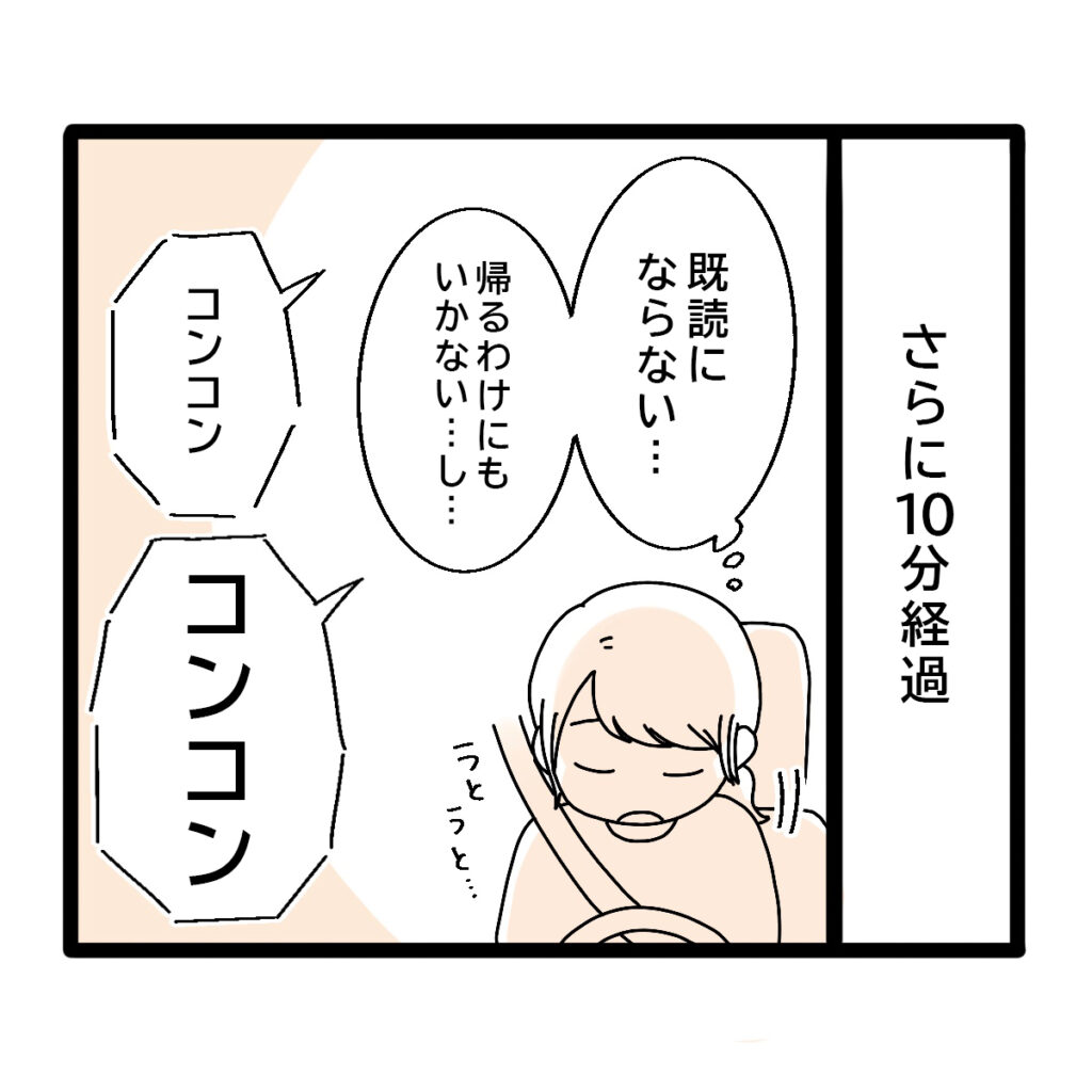 連絡を入れて10分経っても既読にもならず、「帰るわけにもいかないし・・・」とうとうとしていると、コンコンと車のドアを叩く音が。