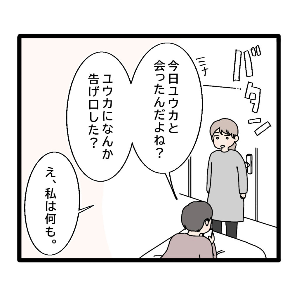 夕飯を諦めて部屋に戻ると、「ミナ、今日ユウカと会ったんだよね?ユウカになんか告げ口した?」伸介にそう言われ、「え、私は何も」と答えると、