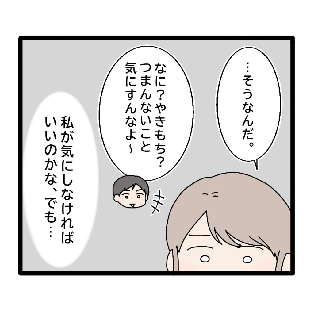 「・・そうなんだ」と呟くと、「なに?やきもち?つまんないこと気にすんなよ~」と伸介は笑うものの、「私が気にしなければいいのかな、でも・・」と不安な気持ちは消えませんでした。