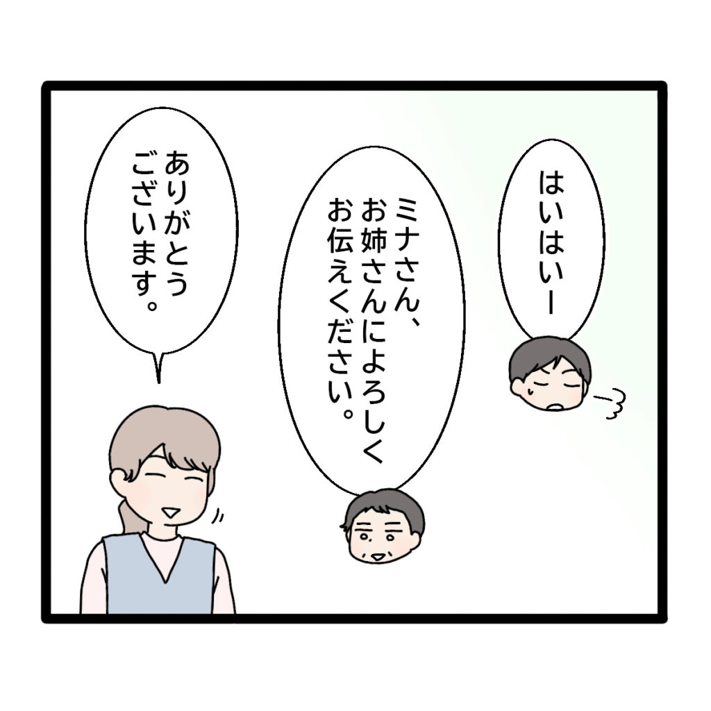 「はいはいー」とふいてくさて文句を言う伸介。その後、「ミナさん、お姉さんによろしくお伝えください」と義父に言われ、「ありがとうございます」ミナは手稲ににお礼の言葉を伝えました。