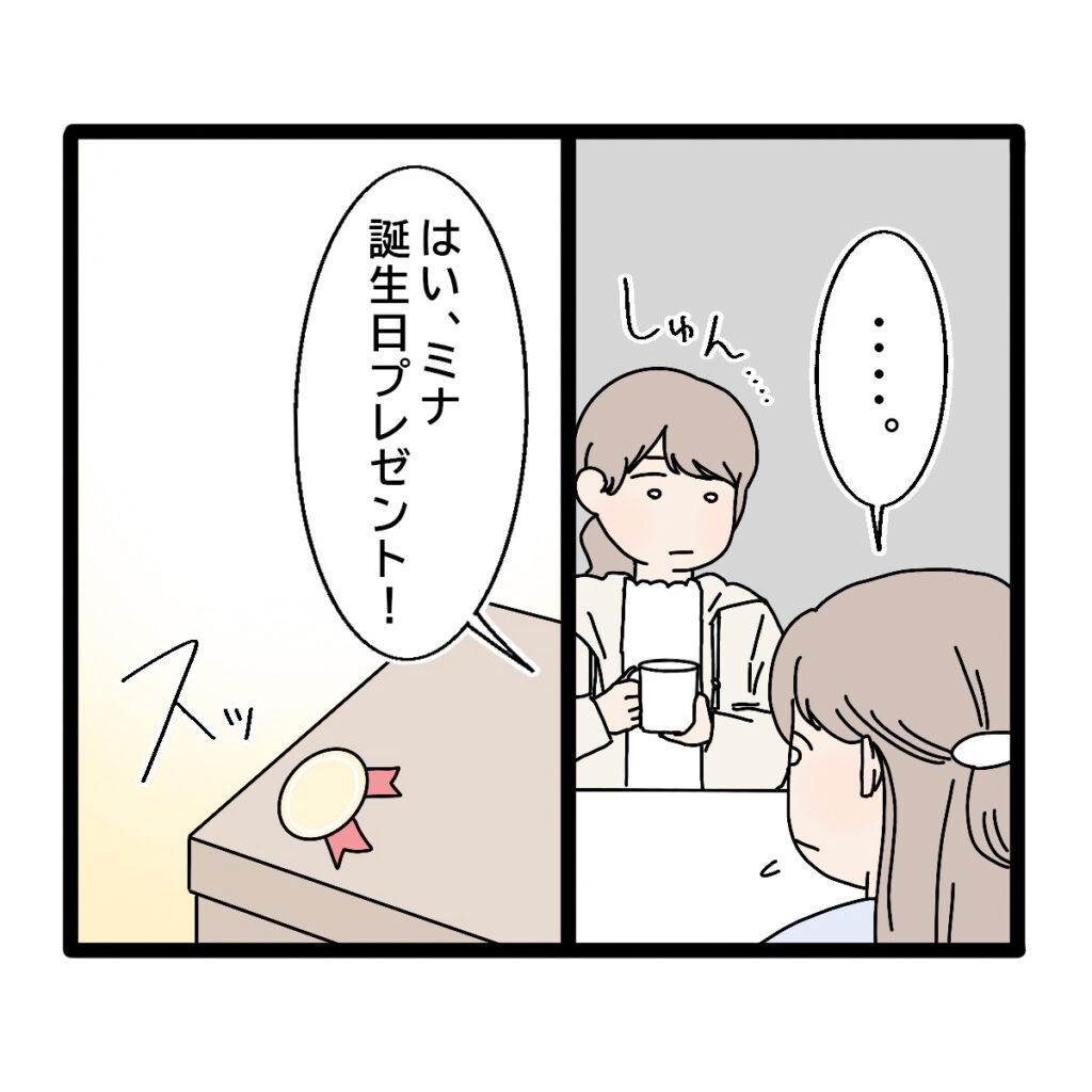 そう言った後、なんだか落ち込んでしまいうつむいていると、「はい、ミナ誕生日プレゼント!」そう言って姉がプレゼントを渡してくれました。