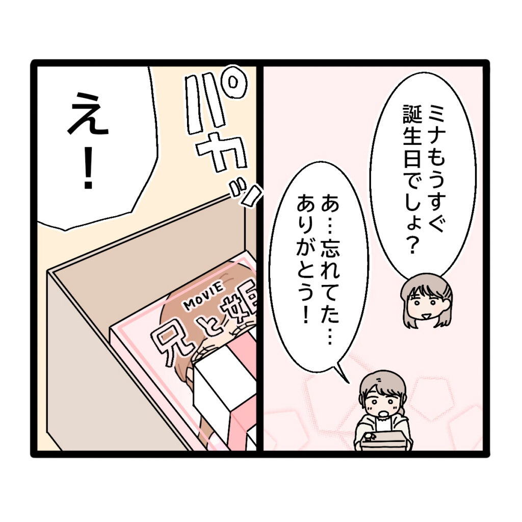 「ミナももうすぐ誕生日でしょ?」そう言われて、「あ・・忘れてた・・ありがとう!」そう言ってプレゼントを開けると、「え!」とビックリ!